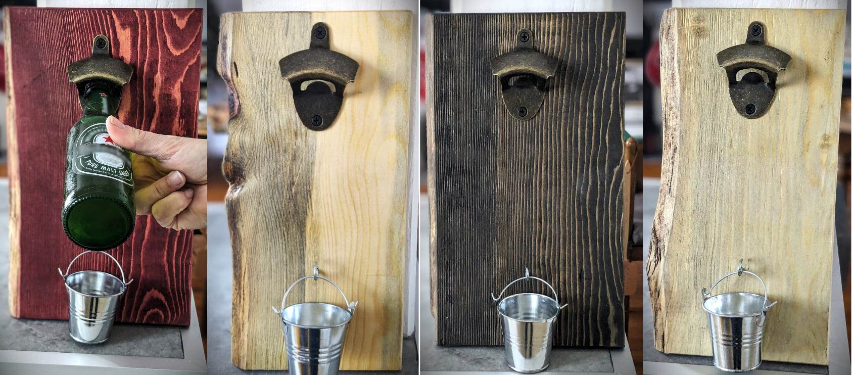 Création personnelle de décapsuleurs muraux.